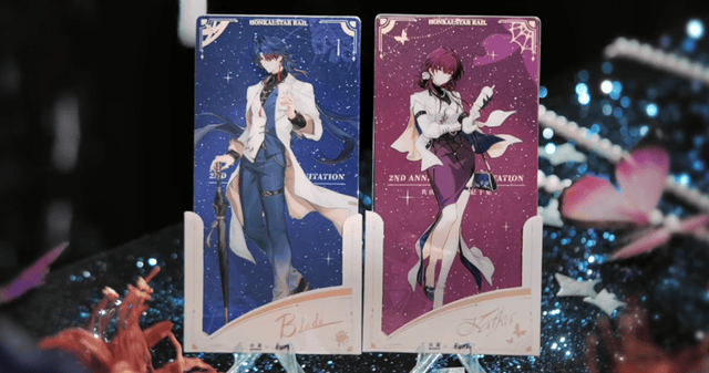 本次联动的每款周边设计都独具巧思,比如透卡的背卡不仅可以透光,还能看到代表着刃和卡芙卡的彼岸花和蝴蝶。