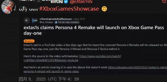 同时,他还继续爆料表示《女神异闻录4 重制版》、《忍者龙剑传4》和《我的世界:地下城2》也可能出现在其中,这位爆料人对于P系列的爆料还是挺精准的,不管是《女神异闻录3:Reload》还是《女神异闻录5:战略版》的发售都无一失手。