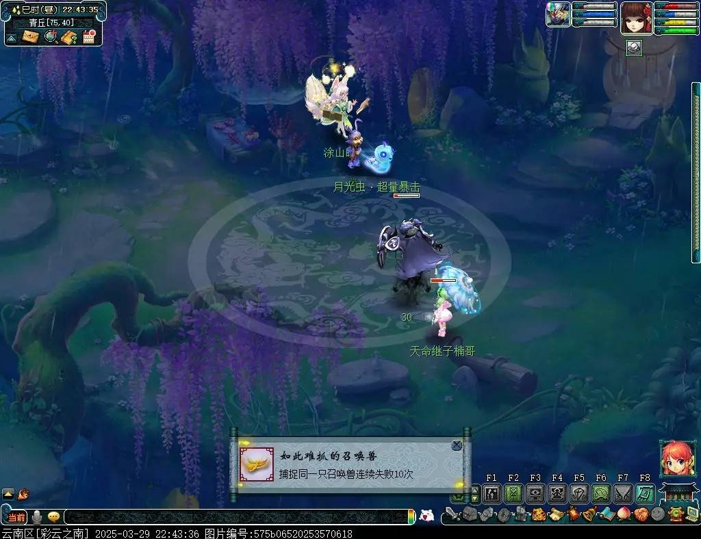 今日,有位小伙伴发来投稿,说自己在逛青丘时,碰见了一只野生涂山瞳。这份看似极好的运气,却令其非常郁闷。毕竟,对于没点猎术的玩家来说,捕捉成功几率是非常低的。因此,这位玩家一连抓了10次都没有成功,最后不得不通过小号送蓝药来维持捕捉所需要的蓝量。不过,猪队长觉得,目前涂山瞳的收购价格普遍在800W左右,这波即便吃一车蛇蝎美人也是值得的!