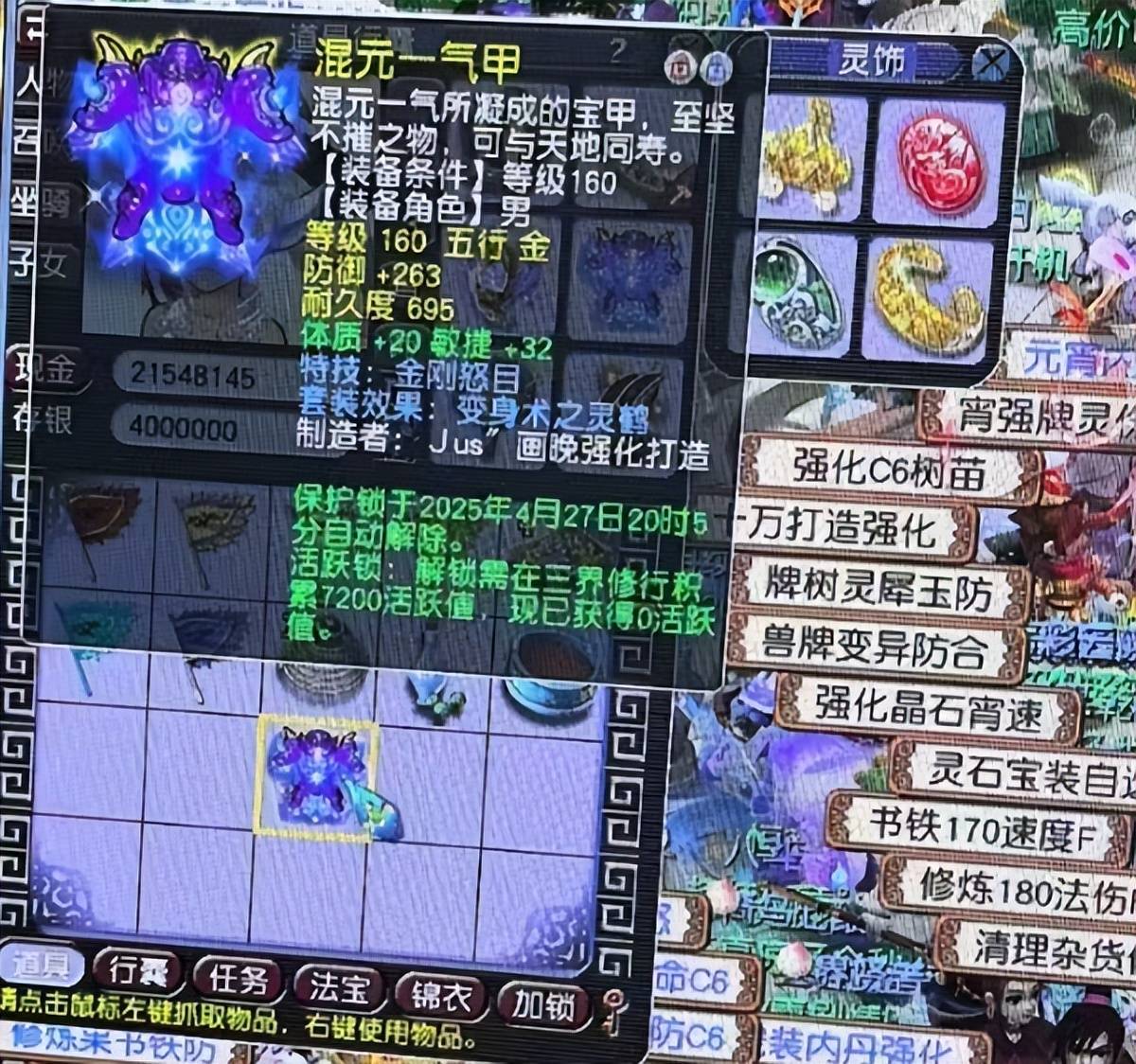 昨日,有位小伙伴在鉴定160级装备时,喜提了一件初防263,体敏双加52铠甲,附带特技金刚怒目和灵鹤套装。但就属性来说,这件装备不仅初防高、双加对,还带有实用性极强的“金刚怒目”,非常适合辅助玩家使用,算是“五位数级别”的高级货,买辆高端电瓶车不是问题!