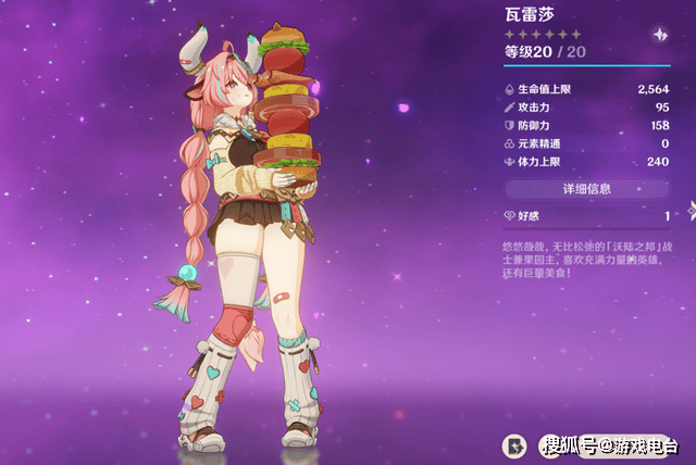 力气大,跑得快的瓦雷莎,饭量也十分惊人,在剧情中她的饭量能单独被计算为“瓦雷莎级”,一口气吃下十几个人的饭,连火神玛薇卡都自叹不如。