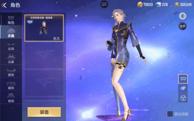 云悠悠保卫者-星宫紫,以神秘的紫色为主基调,巧妙融入金色装饰,彰显出无与伦比的华丽与高贵。上衣采用短款设计,独特的剪裁与精致的装饰细节相互映衬;下装则配以时尚短裤,一侧搭配帅气长筒靴,另一侧则以装饰性绑带点缀,风格前卫且个性十足,完美融合了科幻与时尚的独特魅力。
