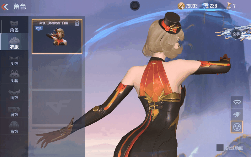 岚兮儿灵魂武者-白露,整体以黑红配色为主,带有金色点缀。上装是高领紧身衣样式,搭配黑色长手套,凸显干练气质。下装为红色紧身裤,配红色高跟鞋,腿部线条修长。头戴黑色小礼帽,发型是金色短发,还配有黑色腰包,整体风格酷炫且充满个性。