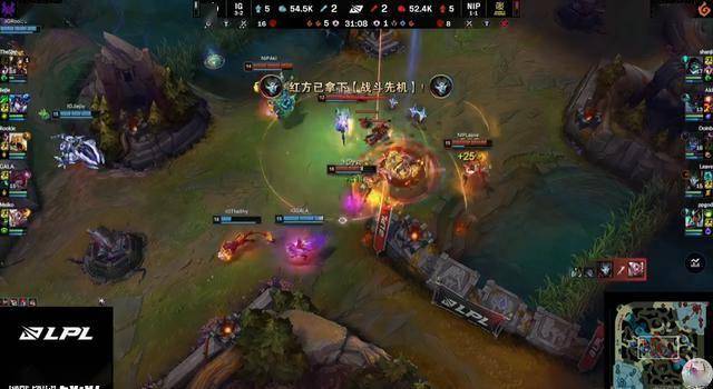 两队打满了Bo3,进入决胜局NIP早早就拿出了约里克,这是一个最近在上单位置分带表现极强的角色。IG还是让Theshy玩同样是版本大热的豹女,这局一改之前的高血腥风格,两队在31分钟之前居然只打出了2-2。这也是导致先机点一直都没有队伍可以触发。