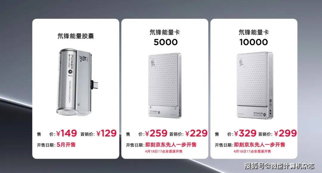 氘锋能量卡5000mAh售价259元,首销福利价229元;氘锋能量卡10000mAh售价329元,首销福利价299元。4月16日起京东平台立即开售,4月18日17点全渠道同步发售。