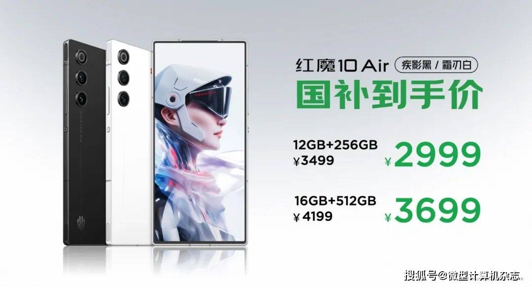红魔10 Air定位于中高端电竞市场,旨在为追求极致游戏体验的玩家提供一款兼具设计与性能的旗舰产品,发布会现场首发推出疾影黑、霜刃白两款配色,烈焰橙版稍后开售,提供三种配置选择,国补后价格更亲民: