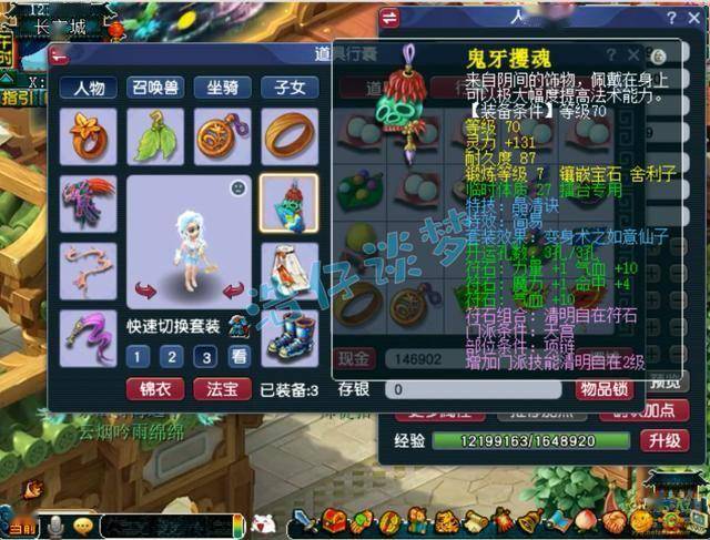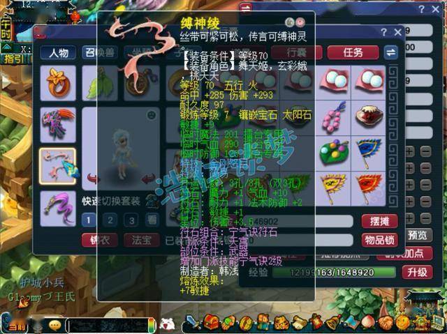 70级简易雾中仙套女衣,熔炼后敏耐双加26,打了7锻月亮石。