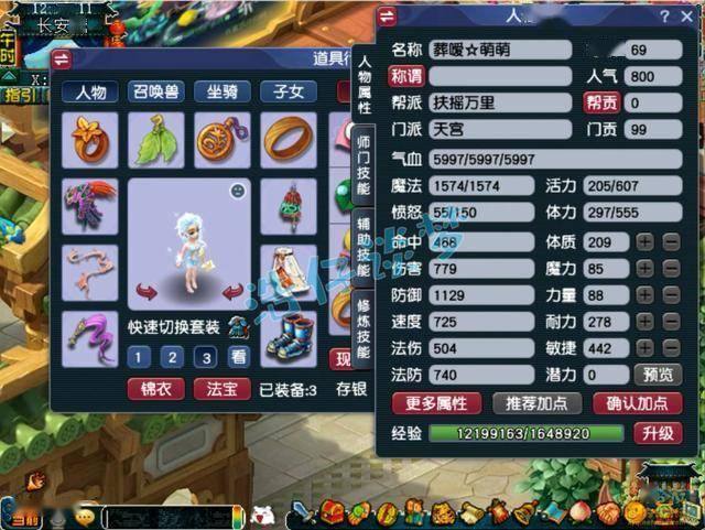 69级天宫没打满临时符的面板属性,与无级别大佬相比,属性并不算太亮眼。