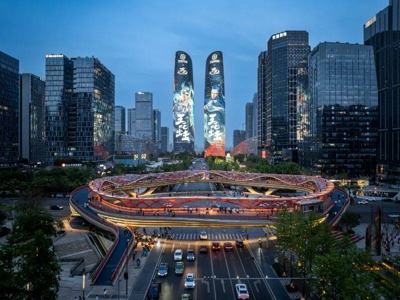 并于成都地标建筑天府双塔