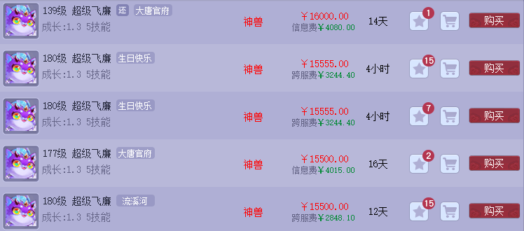 紧随其后的超级神兽为超级飞廉。由于该神兽在高端竞速任务中有极为突出的伤害,所以价格始终稳定在16000左右。需要注意的是,相较于前两年,超级飞廉的价格已经有所下降,但因为保有量较少的原因,价格依然居高不下。