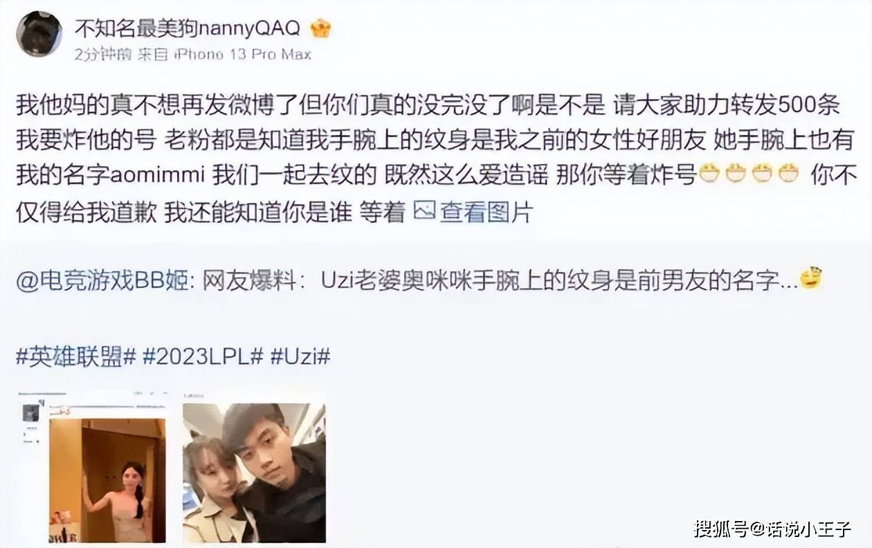 如果说Faker是英雄联盟的第1人,那么UZI应该就是LPL第一人了。现在的UZI可以说是人生赢家,不仅在事业上取得了巨大的成功,在生活中也是美满幸福,娶了老婆,生了孩子。只不过UZI的妻子一直被很多网友讨论,甚至有不少黑子还专门造谣UZI的妻子。这也让UZI的妻子忍无可忍,最终拿起法律的武器,维护自身的权益。这些黑子就造谣UZI妻子手腕纹了前男友的名字,于是UZI的妻子就起诉了4名黑子。