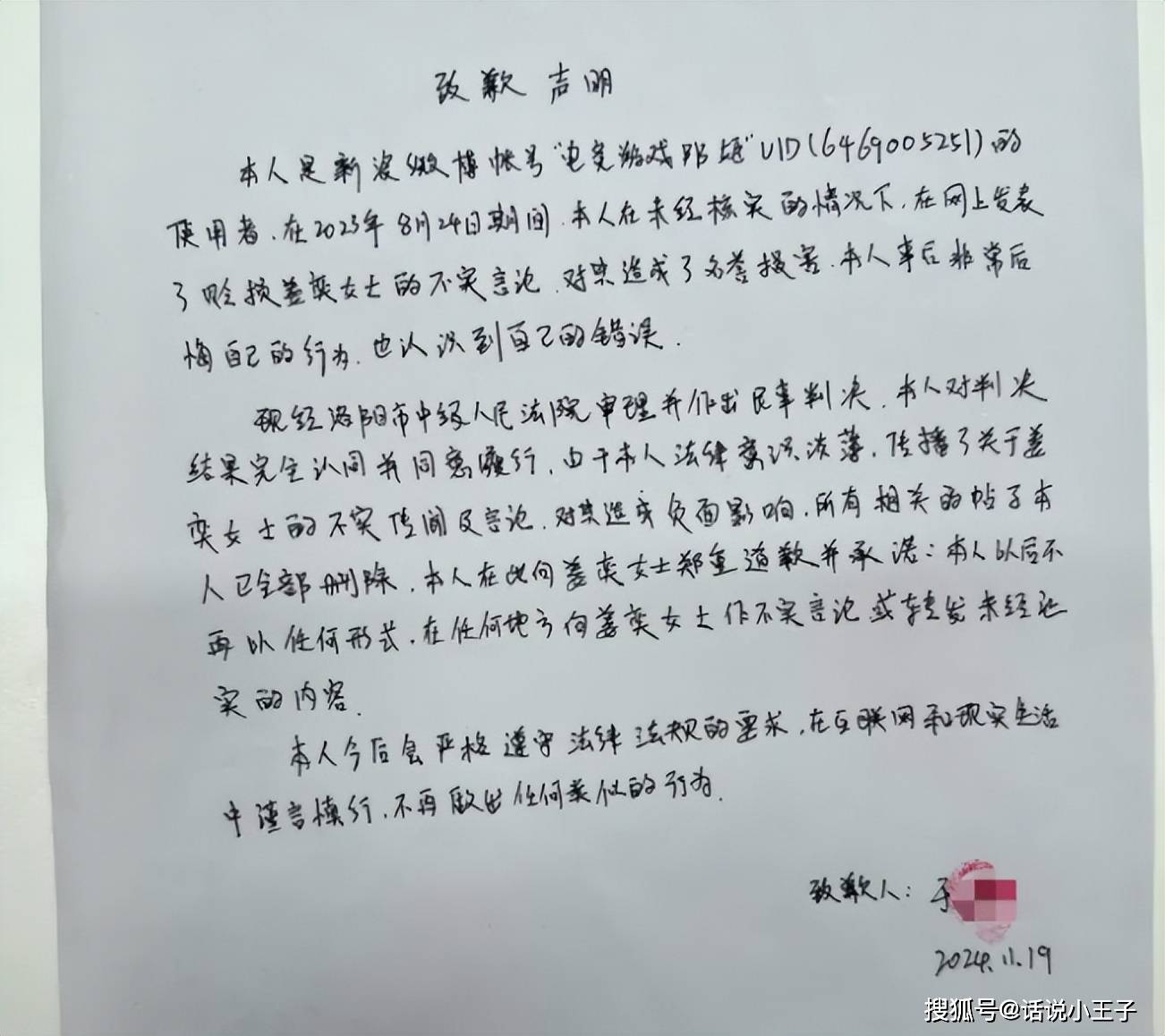 造谣UZI妻子手腕纹前男友名字!4名黑子二审败诉,手写道歉信