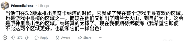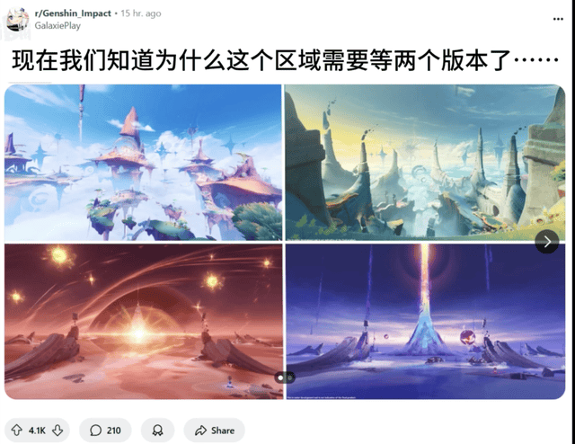 从更新后的体验来看,新地图不仅可探索的区域大,地形有趣好玩,景色还格外震撼,被不少玩家评价《原神》的地图美术设计来到了新巅峰。而且不仅仅是国内玩家满意,海外玩家对新版本也是热情高涨。