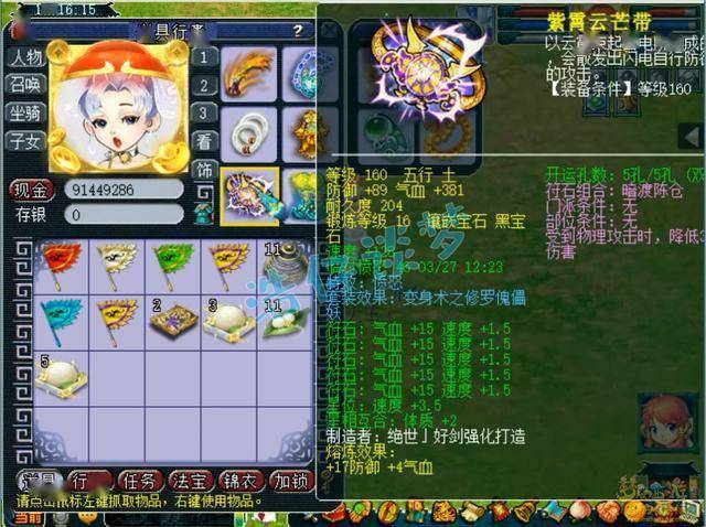 160级愤怒修罗傀儡妖套腰带,打了16锻黑宝石。