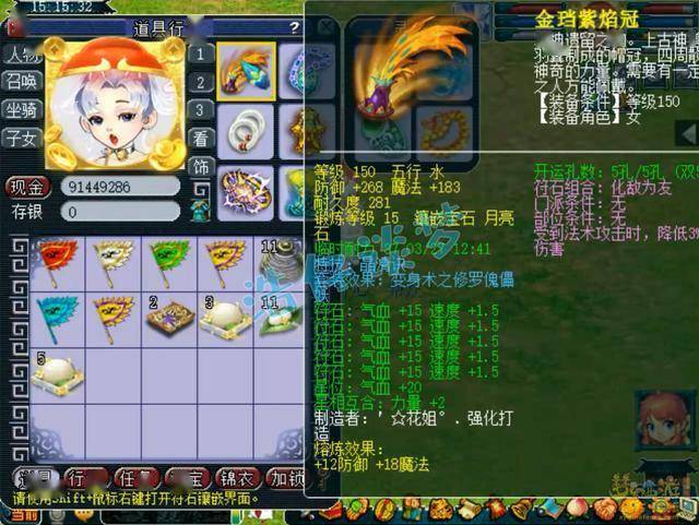 150级带晶清诀的修罗傀儡妖套女头,打了15锻月亮石。