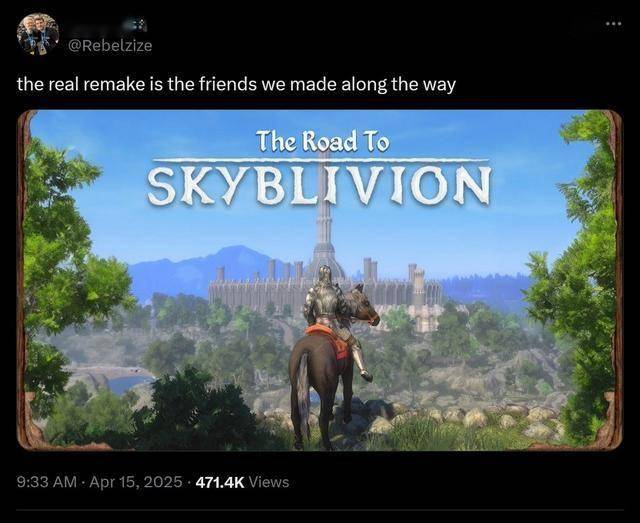 大型Mod“Skyblivion”已接近完成。该Mod采用《上古卷轴5》引擎重现整个湮没世界。近日Rebelzize发推文称,官方重制版的发布不会改变任何事情。他重申自家Mod本就出于热情驱动,团队将持续推进开发。