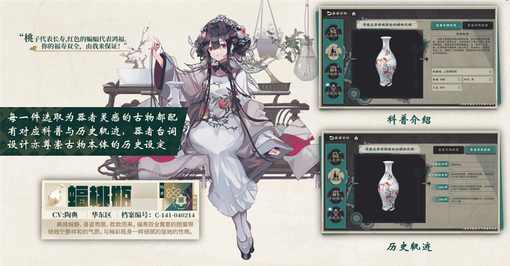 自2024年上线以来,《物华弥新》始终坚持立足中华传统文化进行创新表达,积极响应国家关于新时代文化建设需要,努力传播中华传统文化,在年轻人群体中增强文化自信。在此之前,游戏通过严谨的文物考据、器者拟人化设计以及多元叙事手法,成功将《千里江山图》《雪景寒林图》及《蝠桃瓶》等国宝级文物转化为玩家喜爱的角色,并借助剧情与互动玩法传递其历史内涵。