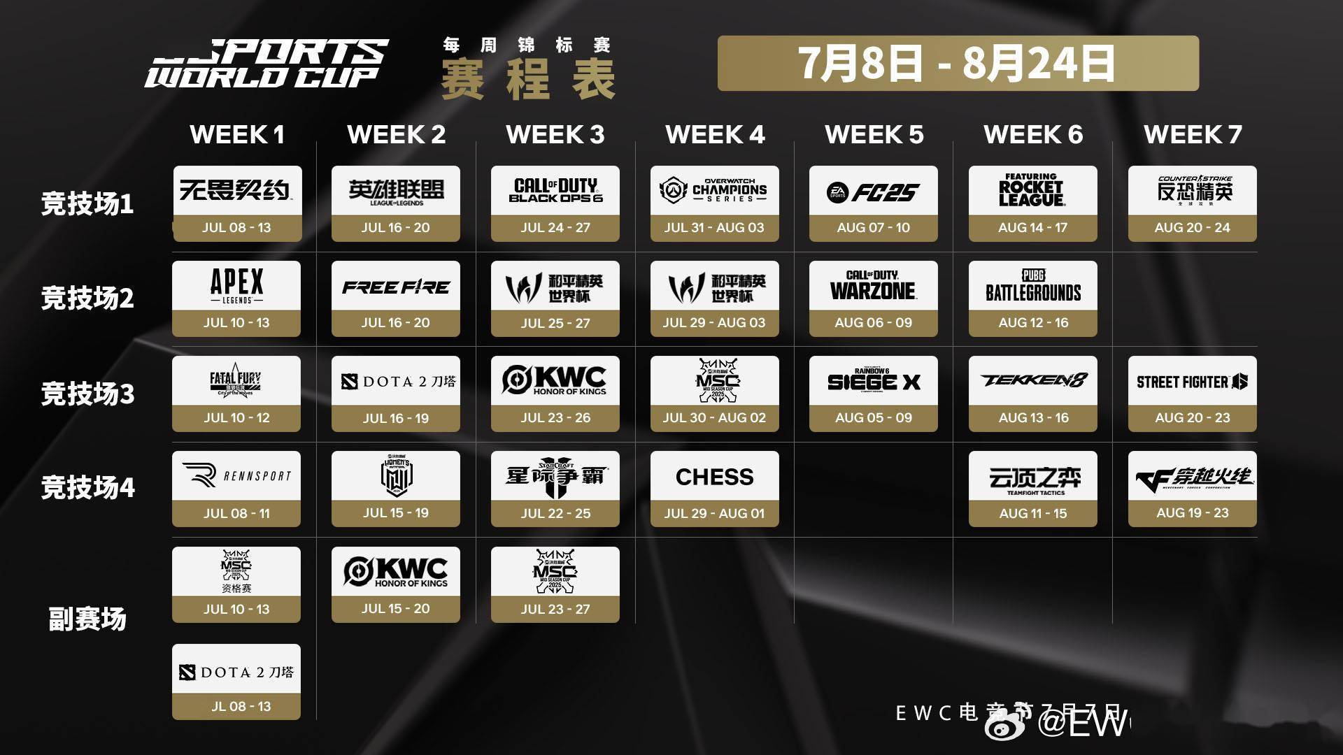 在电子竞技领域的一项重大宣布中,2025年电竞世界杯(EWC2025)将于沙特阿拉伯的利雅得盛大举行,赛事时间横跨7月7日至8月24日。本次大赛共设置了24个正式比赛项目,赛程安排现已由官方正式发布。