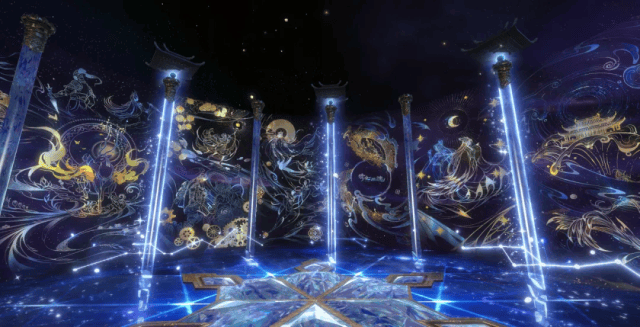 十四周年最震撼的革新,莫过于全新大型地图“如望神州”的开放。这片悬浮于天际的神界秘境,以琼楼玉宇、巡天古道和星河漩涡构筑出史诗般的玄幻奇景。漫步云端,脚下是翻涌的云海,头顶是流转的星辉,每一处细节都诠释着“仙境”二字的真意。而位于此地的韶光展馆,则以十四幅星空壁画串联起2011至2025年的三界历程。壁画中的韶光星影,既是游戏版本的更迭,亦是千万玩家热血与羁绊的见证。