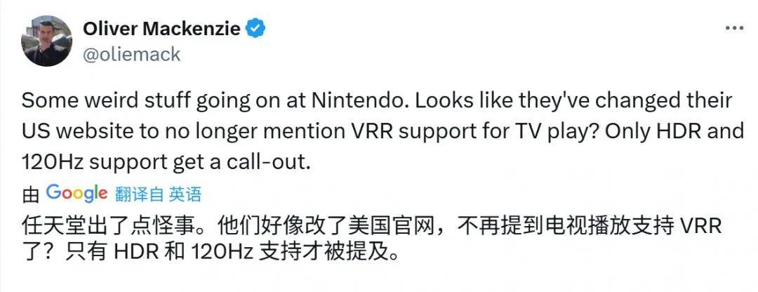 3、谜之操作!Switch 2官网删除了对VRR的支持: