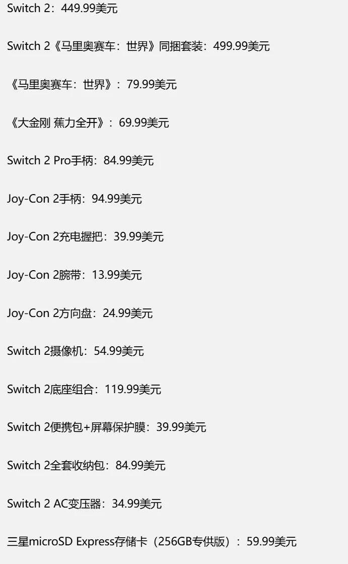 任天堂18日宣布,Switch 2将于2025年4月24日在美国开启零售渠道预购,主机发售时将维持4月2日公布的定价策略——单主机售价449.99美元,《马里奥赛车:世界》同捆套装定价499.99美元,暂时不受关税影响。