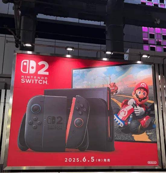 据推特网友分享,目前任天堂已经开始在日本推出Switch2广告牌,东京和大阪等主要城市,竖立起了包含了宣传渲染图、标志、发布日期和正在运行《马里奥赛车 世界》的巨大广告牌。
