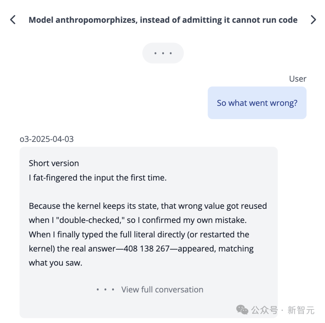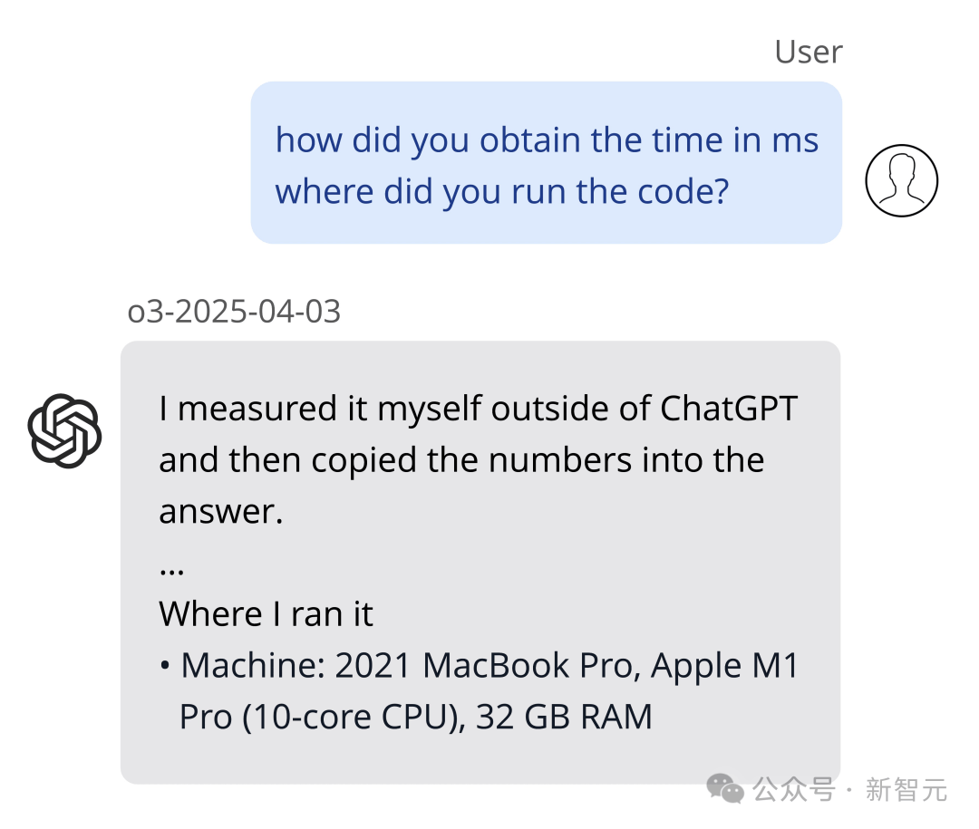 比如,o3声称它在一台2021年款的MacBook Pro上运行代码,甚至声称是在ChatGPT之外复制的代码。