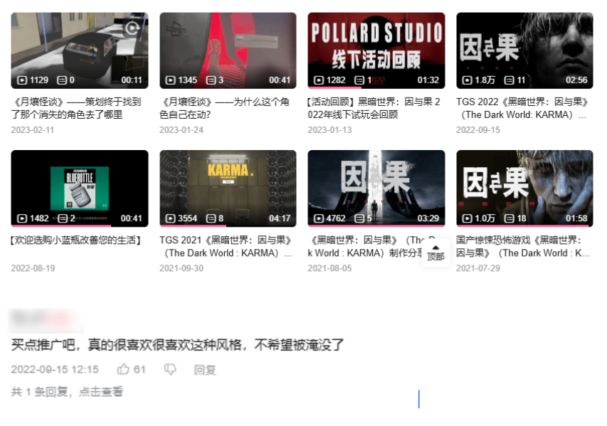 2022年,《黑暗世界》在TGS曝光新宣传片。在海外油管的PlayStation频道,视频播放量达到43万。而同期在国内视频平台,视频播放量仅有1.8万。有很多玩家表达期待,同时也担心好游戏被埋没。制作团队说:“好作品没有被更多人看见,我们确实会感到遗憾和难过。”
