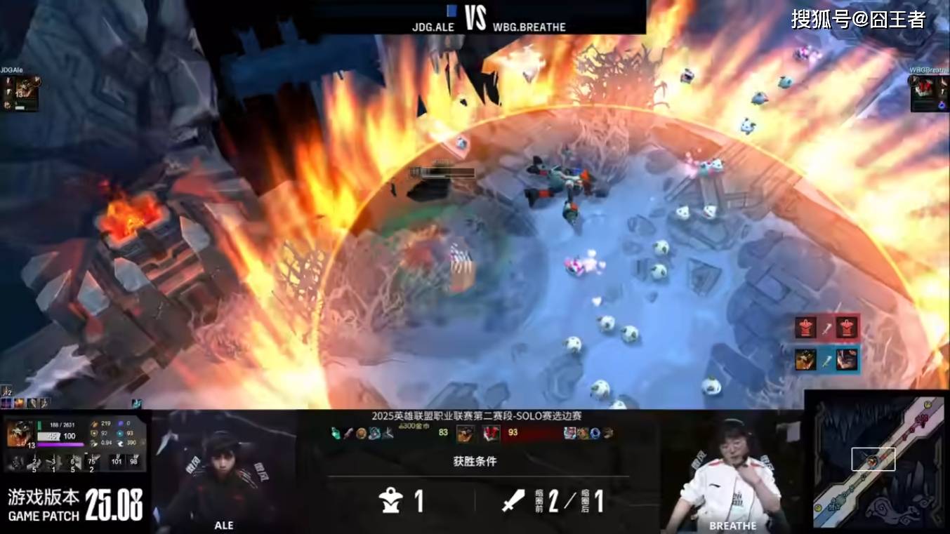 在SOLO选边赛中,Ale雷克顿对阵Breathe兰博。前期Ale雷克顿击败兰博,拿下一血,缩圈后Ale雷克顿丝血反打,再次击败兰博拿下胜利。JDG获得本场BO3首场选边权,JDG选择蓝色方