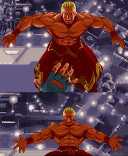 两次坠楼名场面,更是尽显吉斯的恶人魅力——从《饿狼传说3》坠楼的隐忍假死,东山再起,再到《饿狼传说RB》被特瑞击败坠楼时拒绝援手,大笑着坠楼,不仅是玩家们心中难以磨灭的名场面,吉斯所表现出的枭雄般的气概,更是为先前恶人的人设增加了不少厚度。