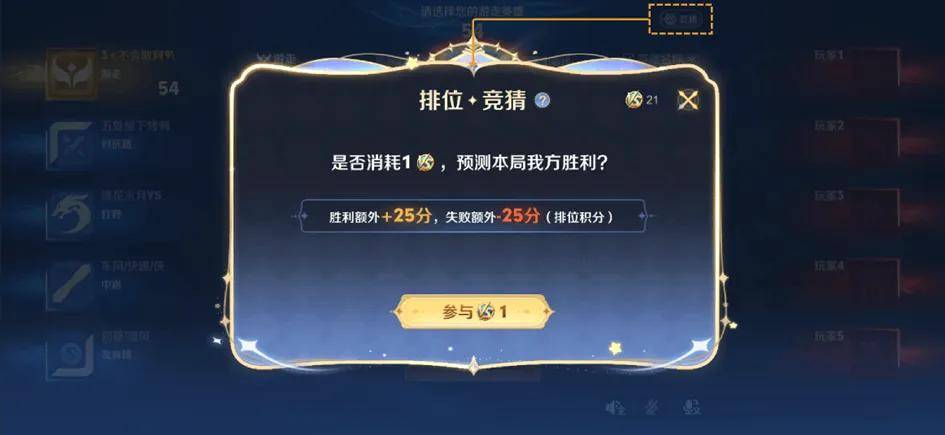 而这个竞猜玩法再一次上架了,只不过这一次的竞猜不再是以一颗星为代价,而是以25个排位积分为代价。