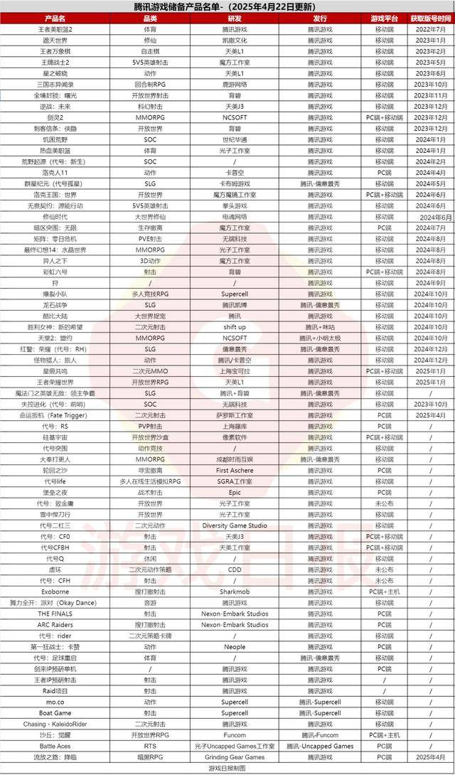 除了上面谈到的这些,腾讯游戏发布会上还曝光了一批新品的测试与上线计划:
