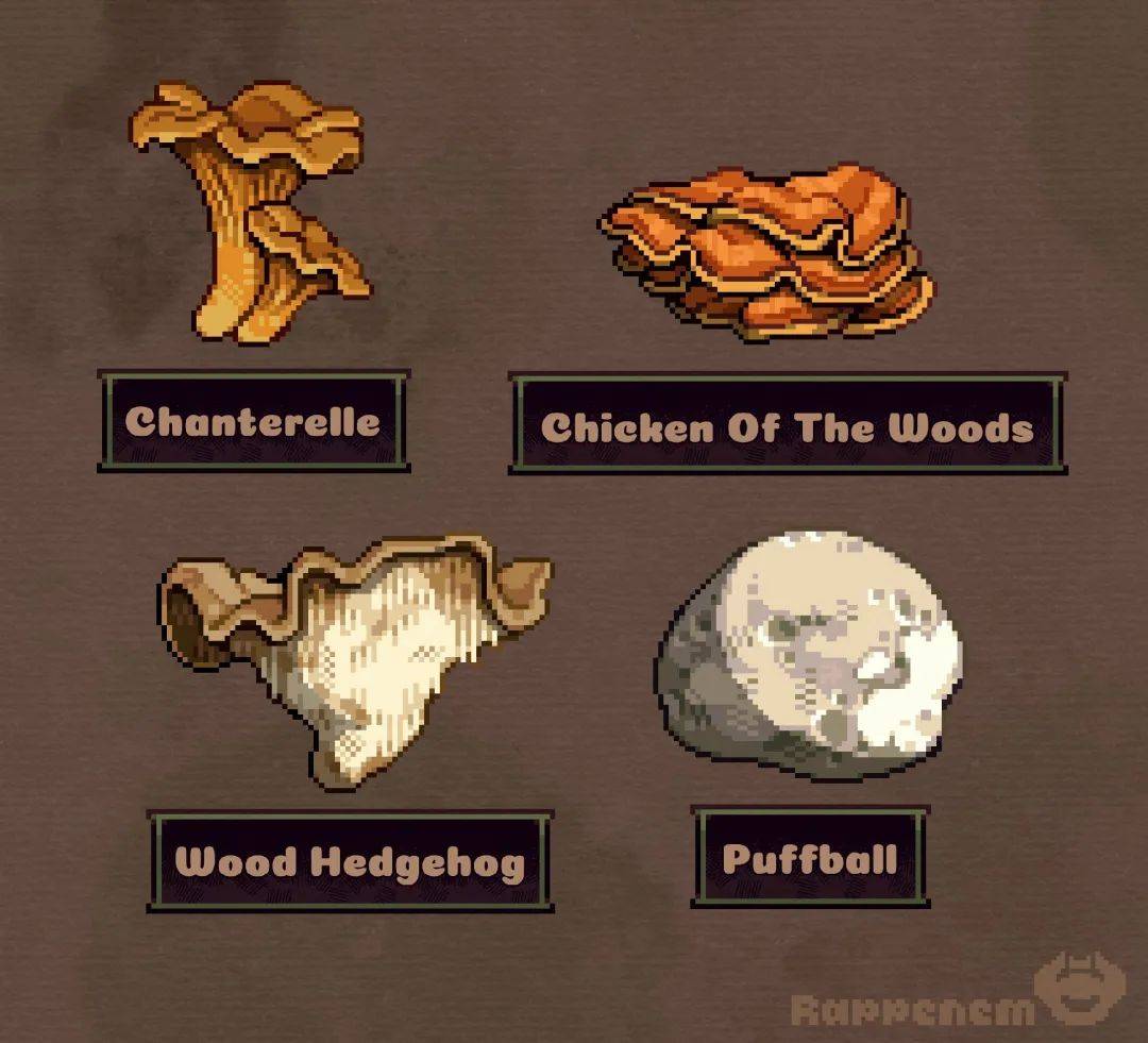 2. 像素艺术欣赏:蘑菇图鉴(Twi/X: Rappenem)