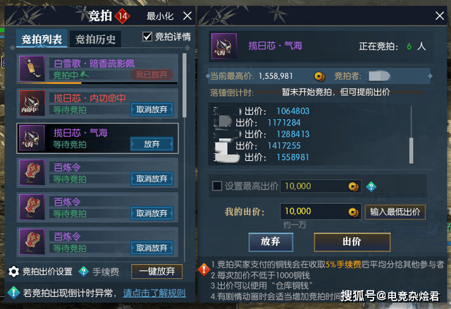 在浮夸所在的服务器上,有玩家幸运的合成了极品的天工品质天机扣。因为无法为其估值,这位玩家就组织起了“全服拍卖”,让价高者得。极品装备迅速吸引了包括浮夸在内的众多氪金大佬,这件装备的拍价也迅速跳动,很快来到了6000万铜钱(约8000人民币)。