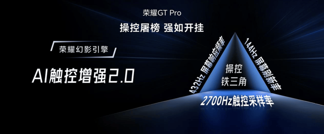 荣耀GT Pro拥有行业超强的“操控铁三角”:2700Hz触控采样率,让屏幕能够更灵敏地采集玩家操作,在游戏中实现快人一步操控体验;432Hz屏幕响应频率,将芯片处理后的画面信息迅速同步给屏幕,让玩家在高频操作中稳稳领先;144Hz屏幕刷新率,更为及时的画面送显,为玩家带来丝滑顺畅的视觉体验。