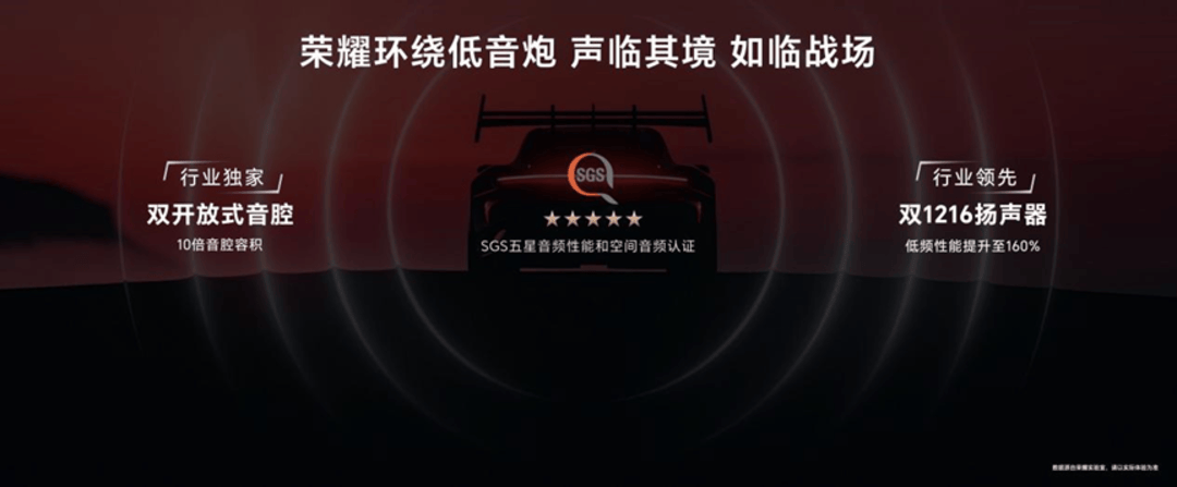 荣耀GT Pro还搭载了旗舰同款的荣耀环绕低音炮,采用行业领先的双1216超大立体声扬声器,以及双开放式音腔设计,无论影音还是游戏,都能让用户声临其境、沉浸感拉满。
