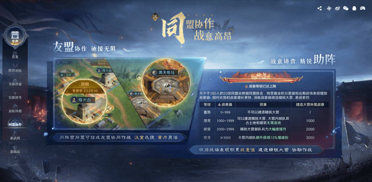 三谋的新版本堪称“史上内容最多的赛季”。此次新赛季带来了首创的非对称对抗地图,将黄巾军和汉室朝廷的战场生动还原到游戏中。同时,新版本紧扣历史,围绕黄巾与汉室阵营,游戏还推出了大量新玩法。例如全新的封侯拜将系统,让玩家升级之路更加简单清晰;AI精锐大营更是玩家福音,以往玩家为了优化兵种搭配常常熬夜肝战,如今AI直接帮忙搞定!