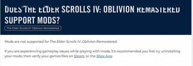 虽然官方宣称“不支持”,但玩家发现《上古卷轴4:湮灭重制版》和原版游戏一样是可以打MOD的: