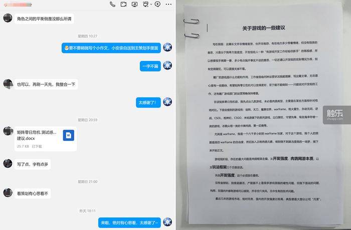 《矩阵》制作组的诚意激发了玩家更深入地参与“共创计划”。一个案例是:一位资深玩家,向制作组提交了一份长达18986字的试玩反馈。这份反馈逻辑清晰,内容广泛,不仅涵盖了游戏开发强度、Rogue网游核心机制、玩法框架设计、运营策略选择及商业化模式等多个维度,还对比分析了十余款具有相似特征的游戏,探讨了《矩阵》的优劣势及未来改进空间。甚至延展到对开发团队运营现状及腾讯游戏运营策略的换位思考——如果没有信任和爱,玩家不会做这么劳心费力的事。