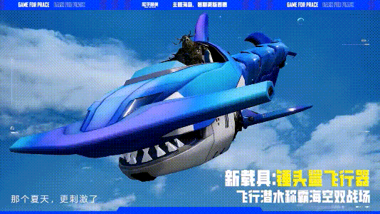 尤其是可双人骑乘、可飞行、可潜水的“锤头鲨”飞行器将游戏的战场维度进一步扩大了。在4月“破刃行动”版本中开飞机没有开过瘾的玩家,这回不但能驾驶新飞行器在空中缠斗,还可以实现潜水蹲点,体验潜艇伏击战术的乐趣。