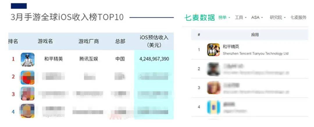 这其中,即将6周年的《和平精英》开年即全面发力。游戏刚刚在2月春节期间取得日活破8000万的成绩,3月据媒体整理的七麦数据统计,又断层式领先取得全球iOS收入榜第一,4月开启的六周年版本也冲上多个榜单前列。