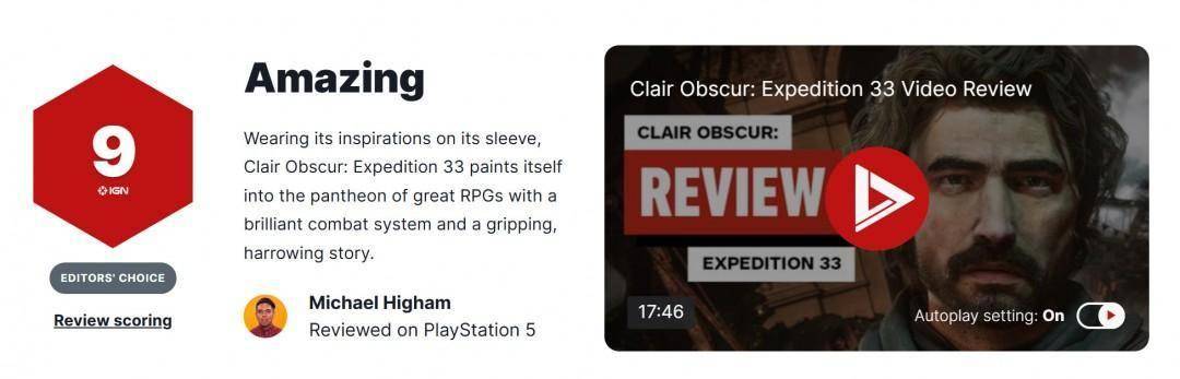 IGN评分:9分,惊艳
