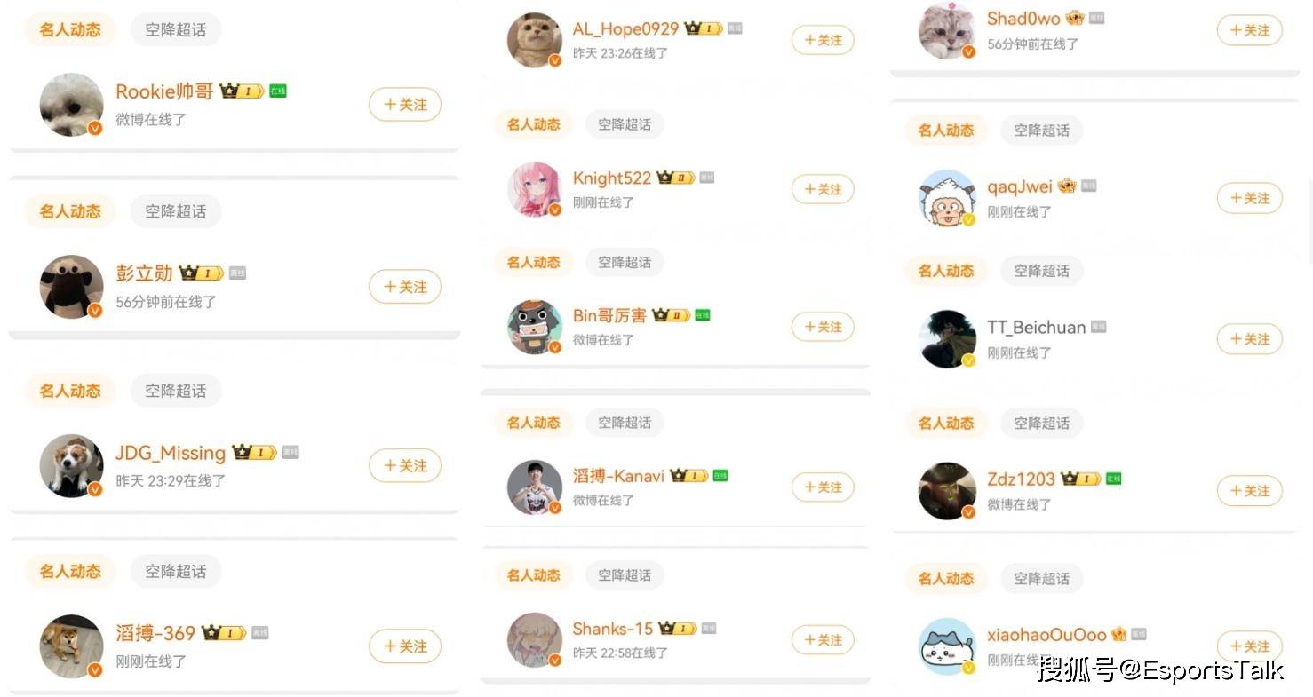 不仅如此,有接近20位LPL现役选手登上了微博账号在线吃瓜;其中包括了Jiejie队友Rookie,解说管泽元、小钰,Xun、369、Knight、Bin等选手。