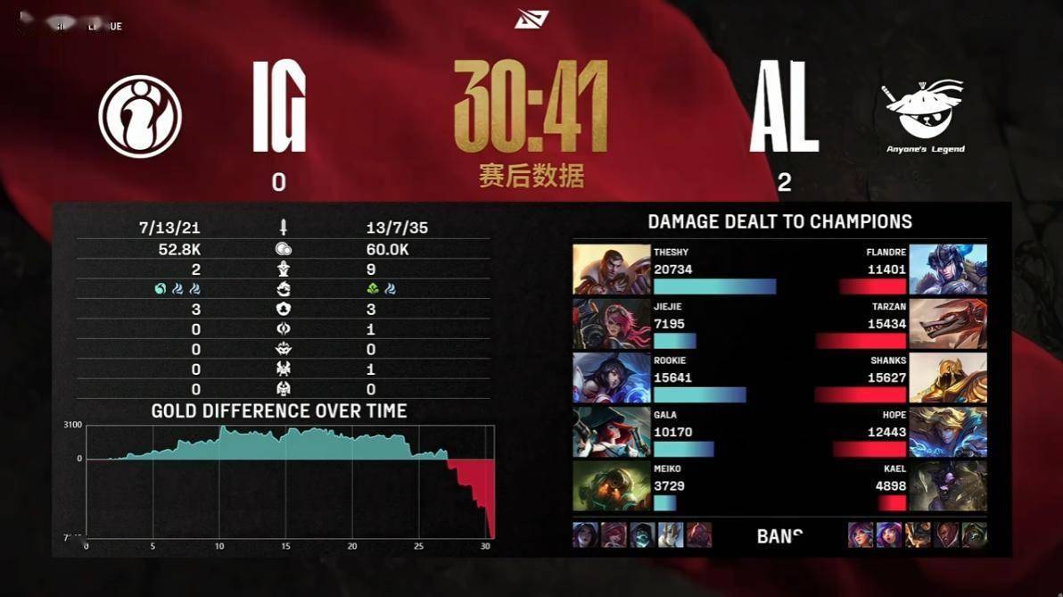 AL大龙一波压高地,IG主动开EZ结果被带入到AL阵型中,随后AL打出完美0换5团灭IG轻松拿下了第二局胜利。