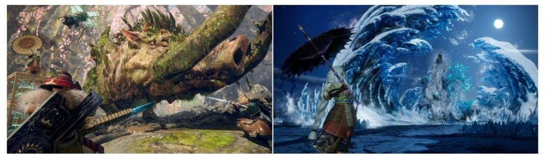在本作中,各式各样的化兽将会挡在猎人面前。熊熊燃烧的熔岩、狂风肆虐的冰雪、弥漫的瘴气——在东之国那片严酷的土地上生存下来的兽类,将自然之力融入体内,既美丽又可怕。要与这些强大的大自然化身的化兽对抗,与伙伴一同如何运用“络缲”的力量将成为关键。