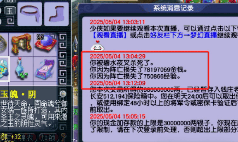 随着新玩法命魂之玉的爆火,这位少侠也开始用小号跟风跑起铸魂任务。当他携带了过亿巨款跑图时,万万没想到遇到了翻车时刻,被小怪夜叉送去小白处喝茶,因此少侠造成约7820W的损失
