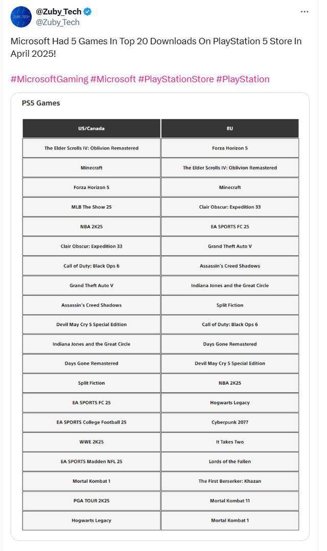 其中,《盗贼之海》和《夺宝奇兵:古老之圈》在PS5平台上表现尤为出色。数据显示,2025年4月,PS5数字商店下载榜前20名游戏中,竟有5款来自Xbox第一方。Xbox显然早已洞悉这些数据,并从中尝到了全平台战略的甜头。回顾斯宾塞此前的表态,微软的战略转型已初见成效,未来或将有更多Xbox第一方大作登陆其他平台,为玩家带来更广泛的游戏体验。