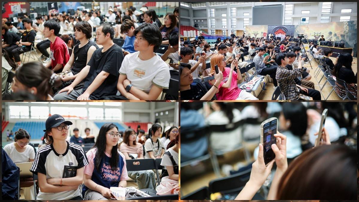 4月30日是五一长假前最后一个工作日,但刚过午饭时间,赛事现场,大量热情的观众如潮水般光临现场,不仅签到台前人头攒动,通往合肥经济学院的一条林荫小径近路更是被大家挤得水泄不通,车水马龙,同学们都迫不及待地想要参与到这场电竞盛会中。在工作人员的热情引导下,观众们有序入场,现场氛围热烈而有序。现场灯光璀璨、音乐激昂,精心布置的电竞装备展示区和体验区,吸引了众多观众驻足、打卡、互动、体验。