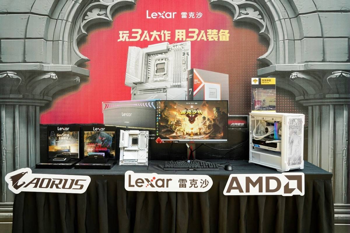 在比赛现场,由Lexar ARES战神系列、技嘉AORUS雕族硬件与AMD锐龙处理器共同构建的多个3A高性能电竞游戏体验平台,打造了多维度沉浸式互动空间,全面展示了3A装备的超凡魅力。