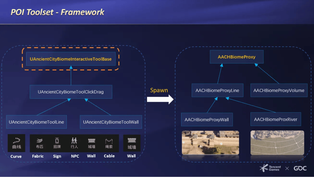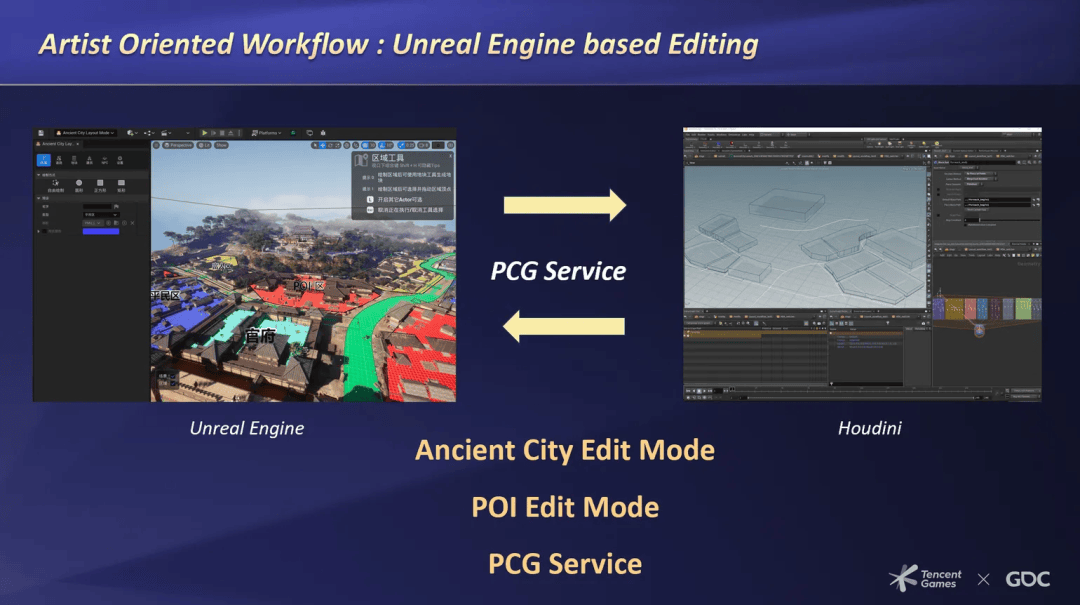 另外一点是,我们通过两种自定义编辑模式扩展了虚幻引擎,即古代城市编辑模式和兴趣点(POI)编辑模式,这将允许艺术家直接在虚幻引擎内创建与PCG相关的所有内容。